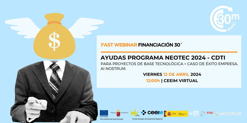 Amb motiu de la propera convocatòria 2024 del Programa NEOTEC, el proper 12 d'abril el CDTI Innovació informarà en el webinario Ajudes del CDTI per al Programa Neotec 2024 sobre les característiques d'aquesta nova convocatòria el pressupost de la qual ascendeix a 20 milions d'euros en subvencions