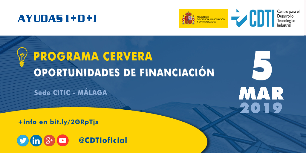 AYUDAS I+D+I | @CDTIoficial presentará las oportunidades del Programa Cervera en #Málaga