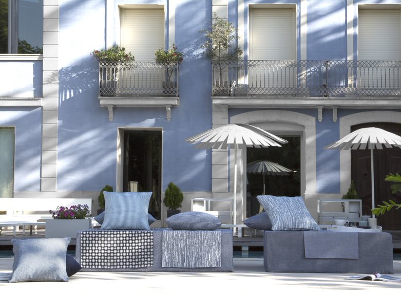 Foto: Industrias Bitex. Colección de exterior METEORA fabricada en fibra acrílica 100% teñida en masa