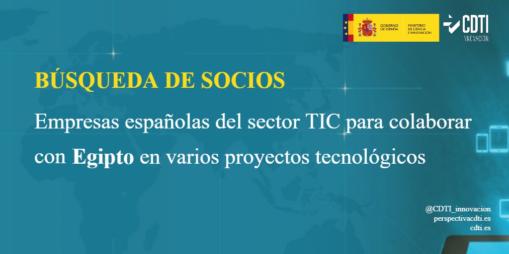 El CDTI Innovación publica una nueva búsqueda de socio para identificar empresas españolas del sector TIC que estén interesadas en cooperar en el desarrollo de varios proyectos de I+D con la empresa egipcia Trend Egypt for Systems.