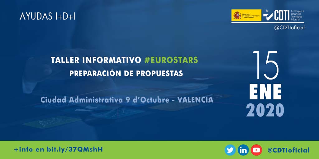 AYUDAS I+D+I | @CDTIoficial organiza en #Valencia un taller para ayudar a las #empresas en la preparación de propuestas para el programa #EUROSTARS
