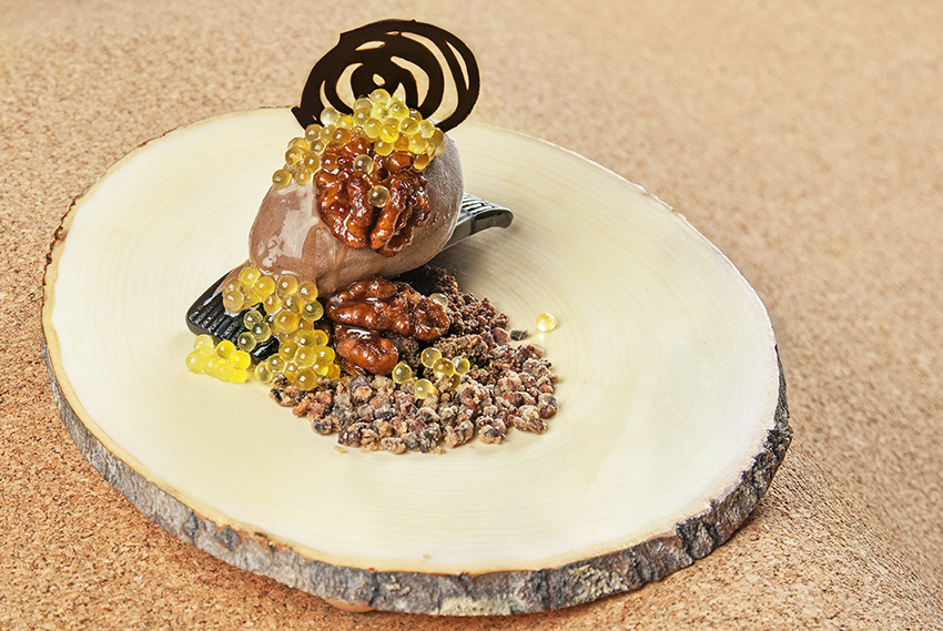 Texturas de chocolate con Caviaroli de aceite de oliva
