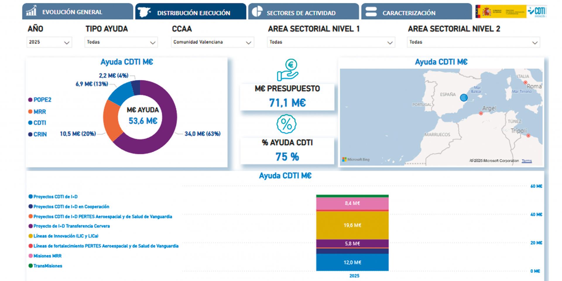 Destaca especialmente la participación en convocatorias en forma de subvención, como NEOTEC, Misiones Ciencia e Innovación y Eurostars, así como las medidas extraordinarias puestas en marcha por el CDTI Innovación para apoyar a las empresas afectadas por la DANA, que han permitido financiar proyectos a través de las líneas LICA y LIC con condiciones especiales.