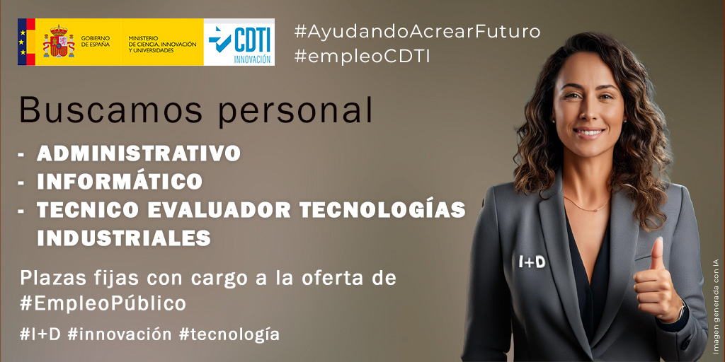 El CDTI Innovación va a realizar próximamente procesos selectivos para la cobertura de cuatro plazas fijas con cargo a la Oferta de Empleo Público