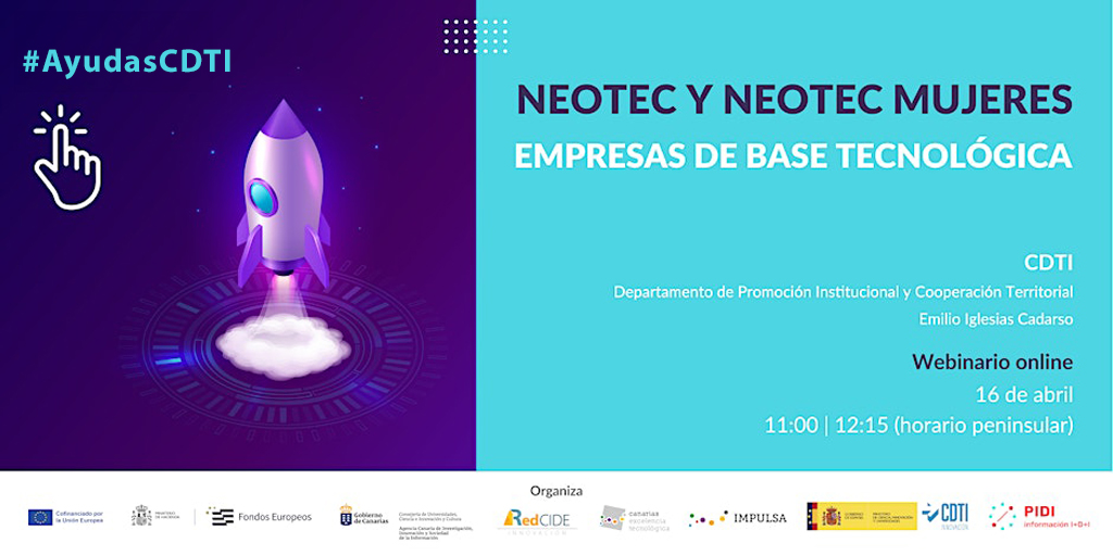 El próximo 16 de abril, el CDTI Innovación presentará, en un webinario, la nueva convocatoria del programa NEOTEC 2024 y NEOTEC Mujeres Emprendedoras cuyo presupuesto asciende a 20 millones de euros en la modalidad de subvenciones de los cuales 5 millones están distinados a proyectos liderados por mujeres