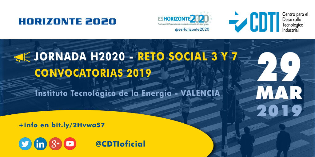 HORIZONTE 2020 | @CDTIoficial presenta en #Valencia las convocatorias de los Retos Sociales 3 y 7 de #H2020