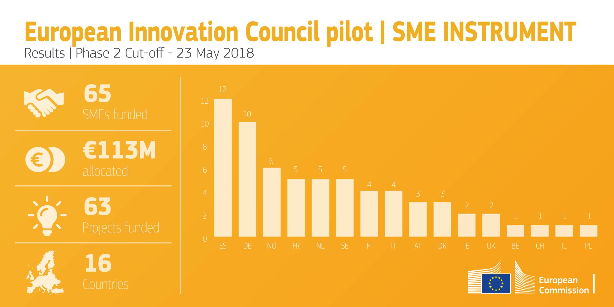 HORIZONTE 2020 | #España vuelve a liderar Fase 2 de #InstrumentoPYME #SMEInstrument @EsHorizonte2020 con 12 proyectos de 63 #EU_EIC @EU_EASME #H2020 @H2020SME @EU_Commission