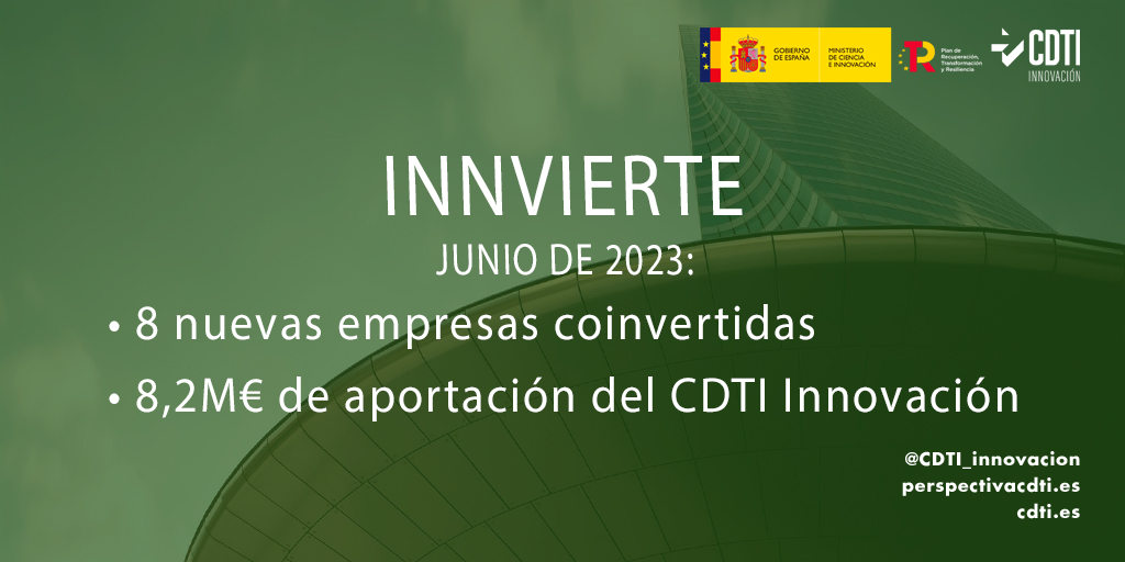 El CDTI Innovación, promotor y accionista único de la sociedad Innvierte, ha cerrado 8 operaciones durante el pasado mes de junio, por importe de 8.243.000 euros, en concreto: