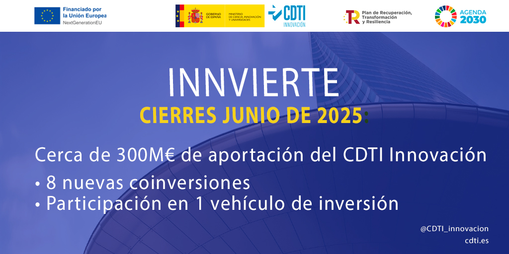 Desde enero de 2025 el CDTI Innovación, a través de Innvierte, ha cerrado operaciones de coinversión en 39 empresas con un compromiso de 67,82 millones de euros, y ha cerrado inversiones en 5 vehículos de inversión con un compromiso de 577,5 millones de euros.
