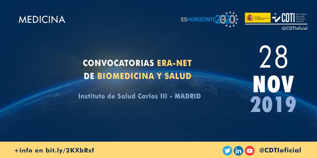 El próximo 28 de noviembre @CDTIoficial organiza, junto con la Agencia Estatal de Investigación (AIE) y el Instituto de Salud Carlos III (ISCIII), la jornada Oportunidades de financiación en convocatorias ERA-NET de biomedicina y salud.